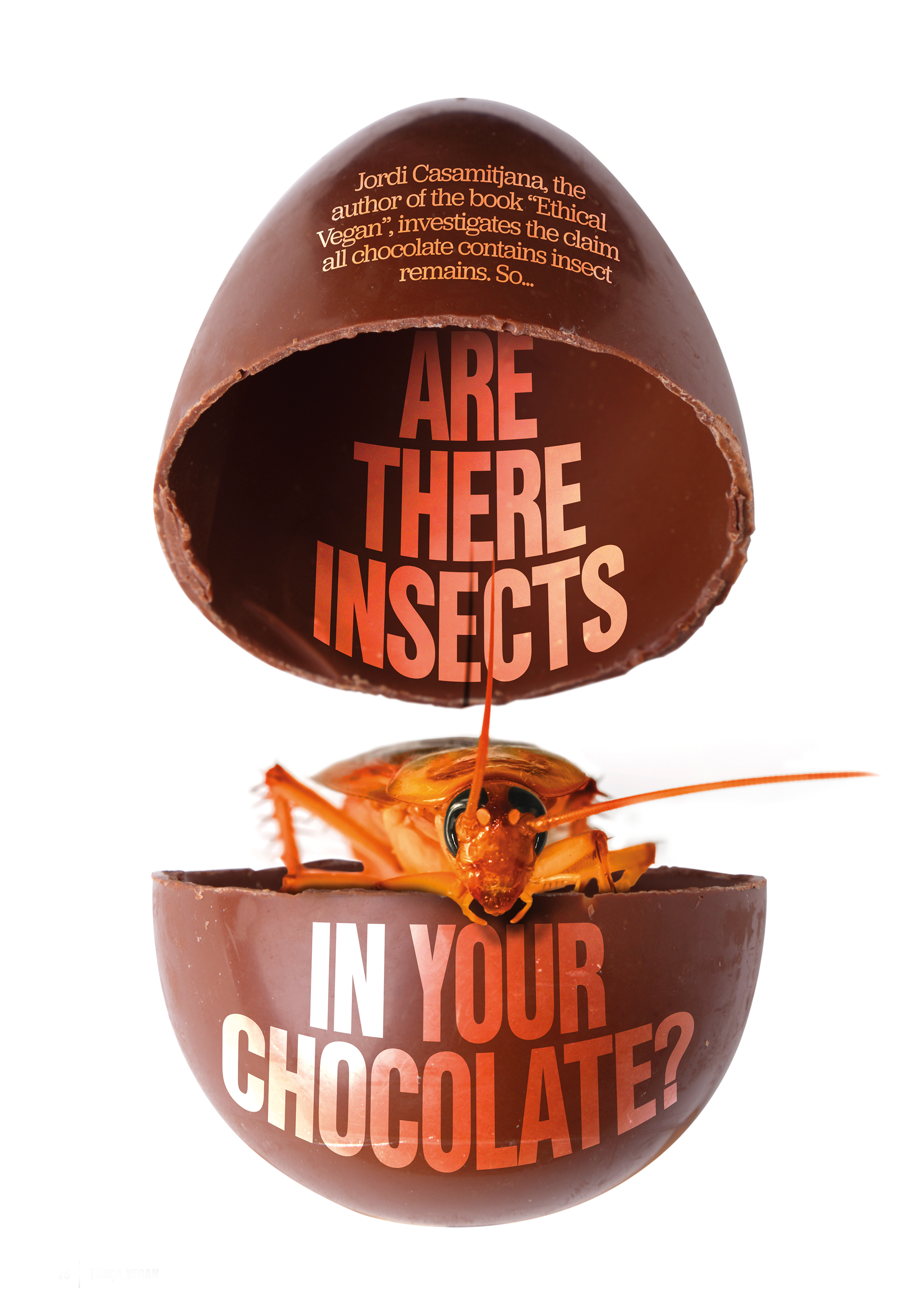 The below image and opening double page spread is for a cross-contamination article, and is an example of my creating custom images in Photoshop. After reading the article in full, I decided to name the article 'Are there insects in your chocolate?' and create a sort of Kinder Surprise with a cockroach inside. It's a striking image that fits the space and it's hard not to read the headline because of it.